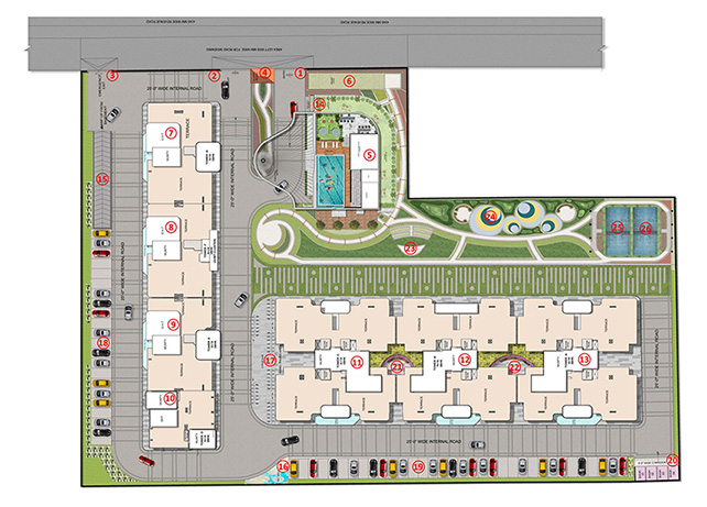 All electrical wiring in concealed conduits, provision of adequate light and power points. Telephone and TV outlets in Drawing, Dining and all Bedrooms, Moulded Modular Plastic Switches & protective MCB’s.